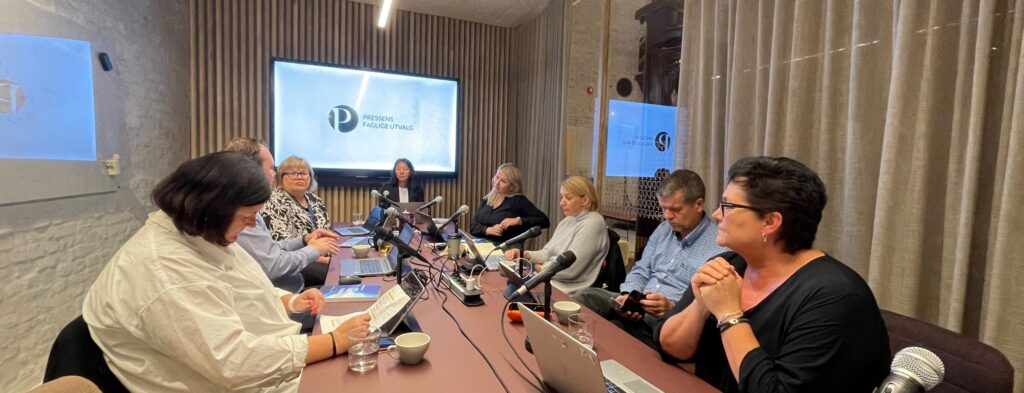 Utvalget hadde seks klagesaker til full behandling, men i én klage mot Sandefjords Blad som gjaldt publisering av fødselsnumrene til huseiere i en bryggekonflikt, endte utvalget opp med å utsette konklusjonen til november-møtet.
